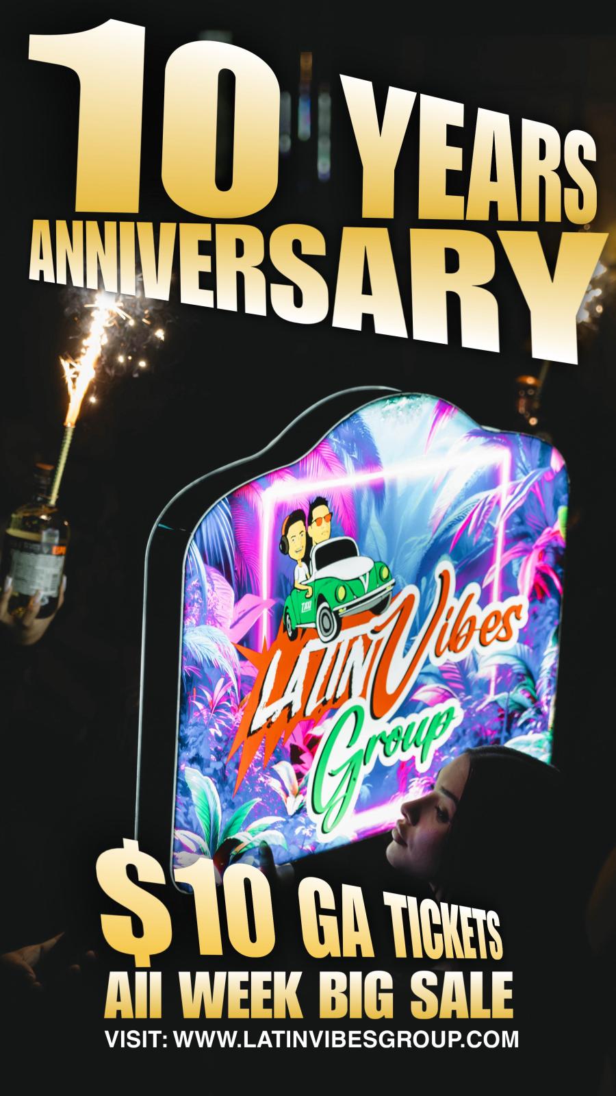 For the past decade, Latin Vibes Group has brought you the hottest parties, unforgettable nights, and nonstop perreo in the Tri-State area. Now, it’s time to celebrate 10 years of vibes, music, and community—and the best way to do it is by giving back to YOU, our loyal fans and supporters.