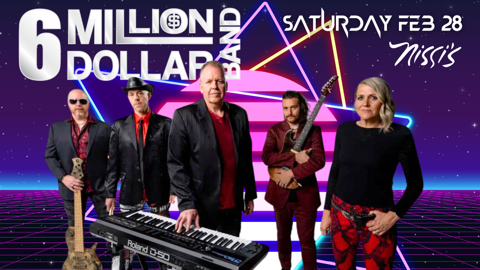 6 Million Dollar Band is a performing high energy 80s new wave dance hits exactly as the original artists with the correct sounds and musical style. Nailing "the 80s sound" is not easy, and no one does it better than 6 Million Dollar Band. Don't take our word for it; listen to our live demos and check out our video!
