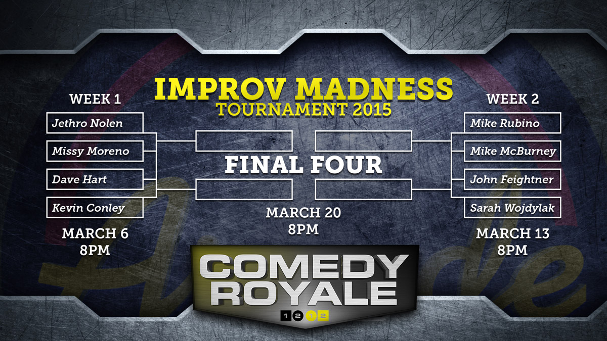 Improvisers face-off in a three-week tournament to crown the COMEDY ROYALE CHAMPION
