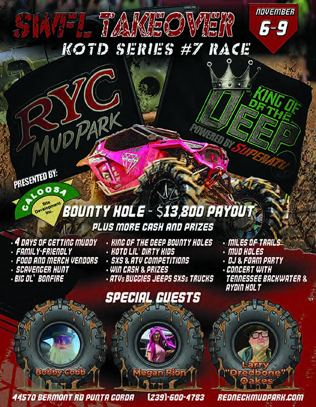 These campsites offer a little more privacy. For our King of the Deep SWFL Takeover event at RYC Mud Park weekend November 6th thru November 9th, we are offering up 20 of these sites. Located on the right side near the end of the main road, these wooded sites offer a shell pad for one RV or trailer and space for your toys for the entire weekend. How does it work? Check it out....