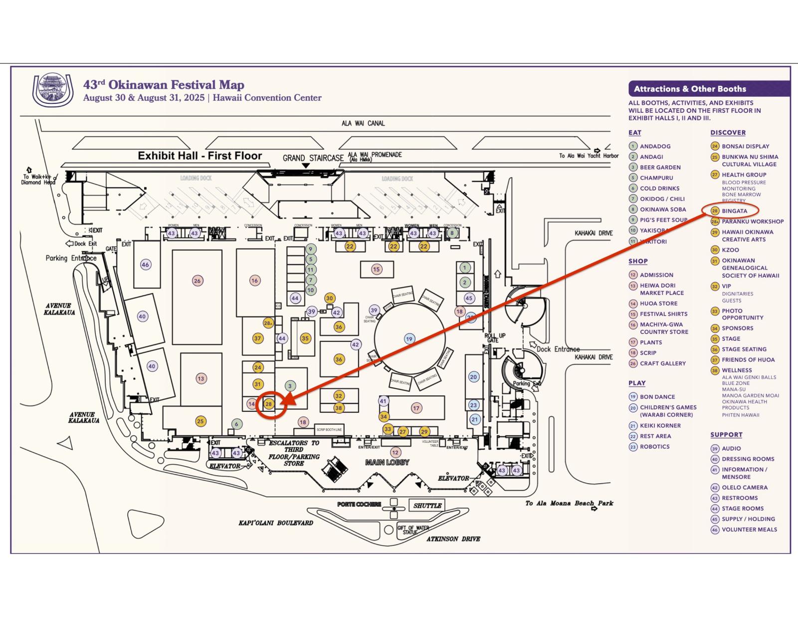 - Check in at the Bingata Workshop Booth (inside Exhibit Hall I, see map below) at least 10 minutes prior to the start of your session.