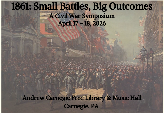 The Andrew Carnegie Free Library & Music Hall is pleased to announce our eighth annual Civil War Symposium, slated for April 17 – 18, 2026. Though overlooked in favor of later years and larger battles, the first year of the Civil War witnessed many advances and setbacks, trials and tribulations, personalities and decisions that affected how the remainder of the war came to be fought. In 1861: Small Battles, Big Outcomes, seven dynamic historians will unpack the military, political, and social threads of this pivotal year in our nation’s history.