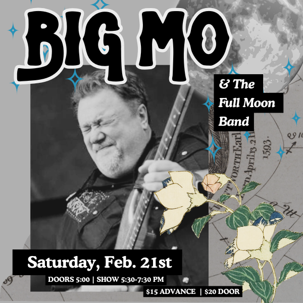 Big Mo delivers a powerful, blues-rooted sound with a big band feel, original songs, soulful vocals, and bluesy guitar. His latest album Torn blends Blues, Country, Pop, Latin, and Jazz, music he calls “from the stomach and soul.” Independent and genre-defying, Big Mo performs worldwide with Big Mo & The Full Moon Band.