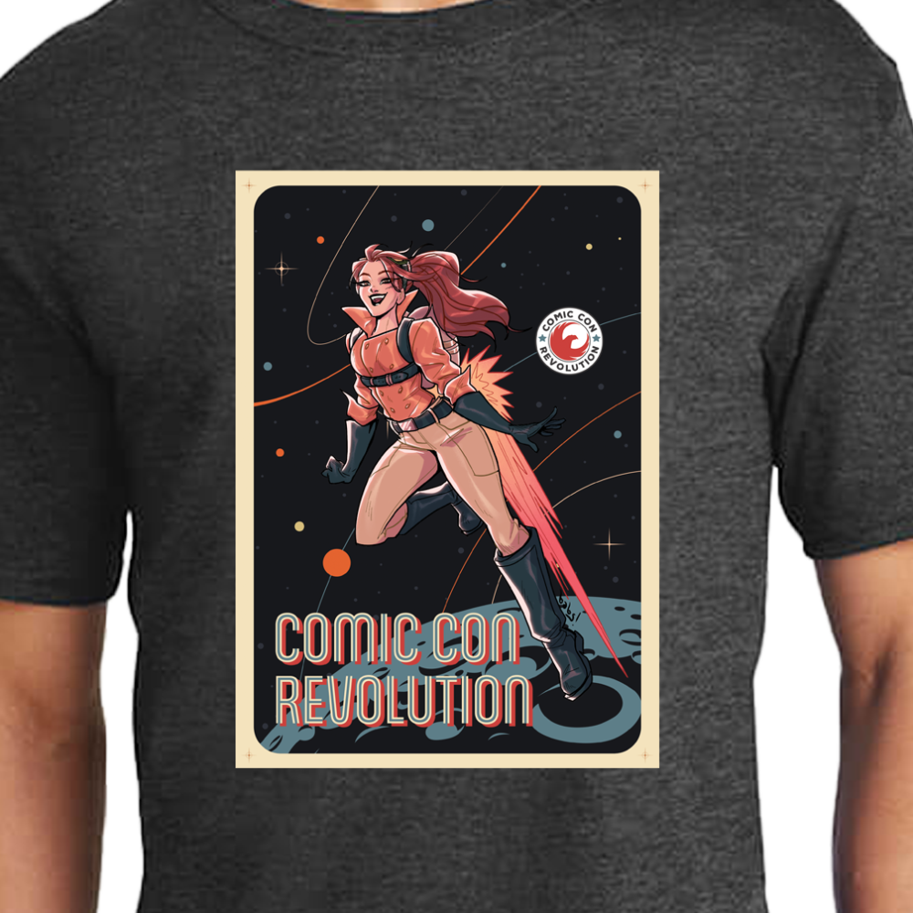 Comic Con Revolution is excited to offer our all new 2026 art tee featuring our very own Jetpack Jules by comic book artist Babs Tarr! Limited edition and once sold out will be gone so preorder one now!