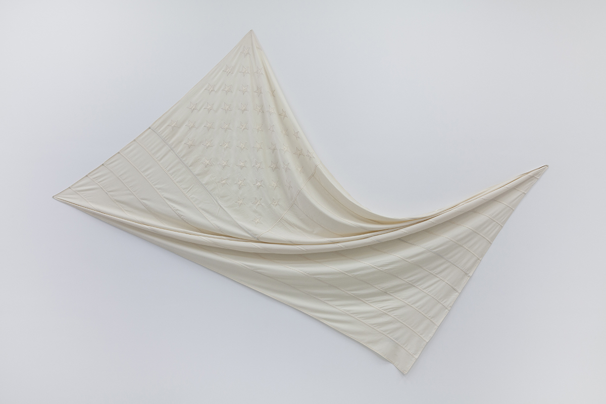 Donald Lipski, in collaboration with The Fabric Workshop and Museum, Philadelphia. Who's Afraid of Red, White and Blue #37, 1990. White wool gabardine, 71 x 115 inches. FWM Visual Archives.