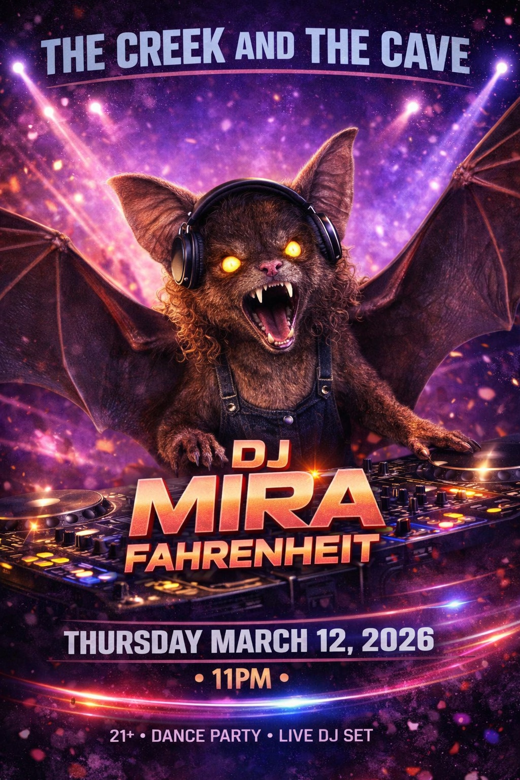 Join DJ Mira Farenheit on the outdoor stage at The Creek & The Cave for a late-night dance party under the Austin sky.