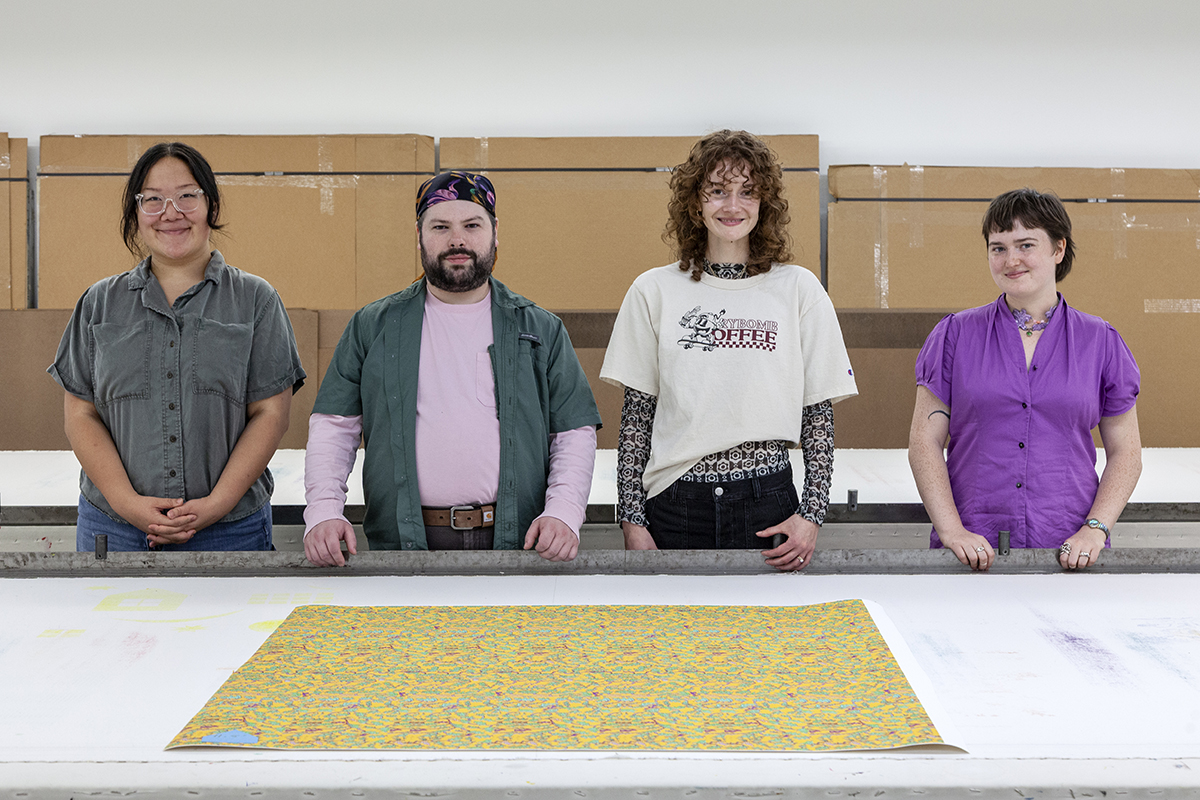 Join us to celebrate the achievements of our Fall 2025 Apprentices: Vanessa Liang, Steven Valera, Macy West, and Martina Taylor. View their culminating large scale repeat patterns and learn what they’ve been up to during their FWM apprenticeships. We’ll also showcase the amazing work of local teens who participated in this fall’s High School Apprentice Training Program. Guests will be able to learn more about educational opportunities for artists of all ages while getting a glimpse of our professional screenprinting studio.