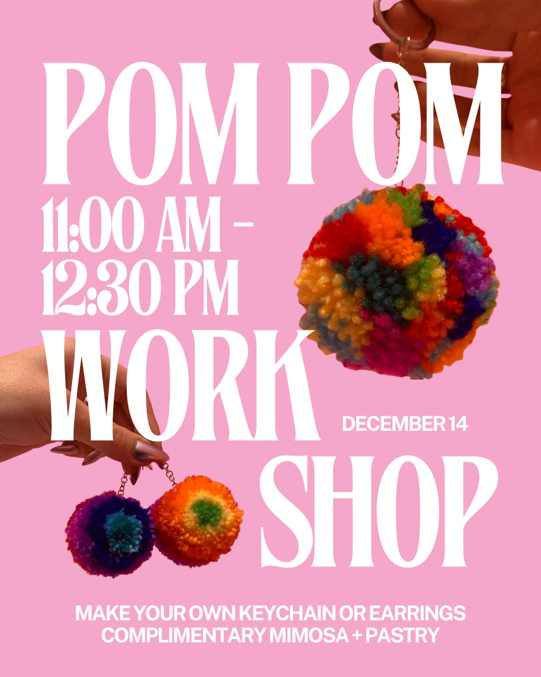 - Your choice of yarn and all materials to make a custom pair of pom pom earrings or pom pom keychain.