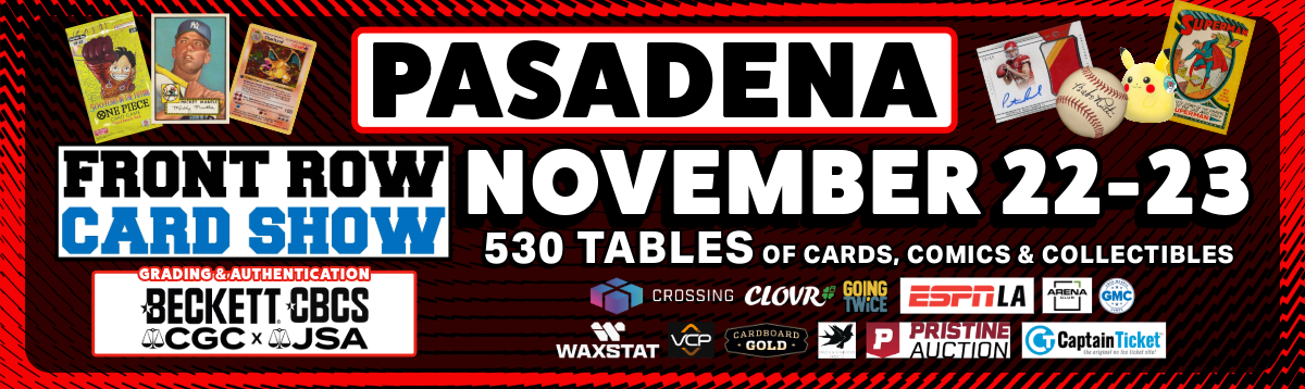 A SHOW FOR COLLECTORS of sports cards (baseball, football, basketball, hockey, soccer, racing, boxing, UFC), trading card games (Pokemon, Magic The Gathering, Yu-Gi-Oh, Lorcana), comic books (Marvel, DC Comics, indie), Star Wars, original artwork, action figures, Funko Pops, toys, video games, sports memorabilia, autographs and other collectibles. Front Row Card Show features a huge variety of vendors, prizes and opportunities to buy, sell and trade.