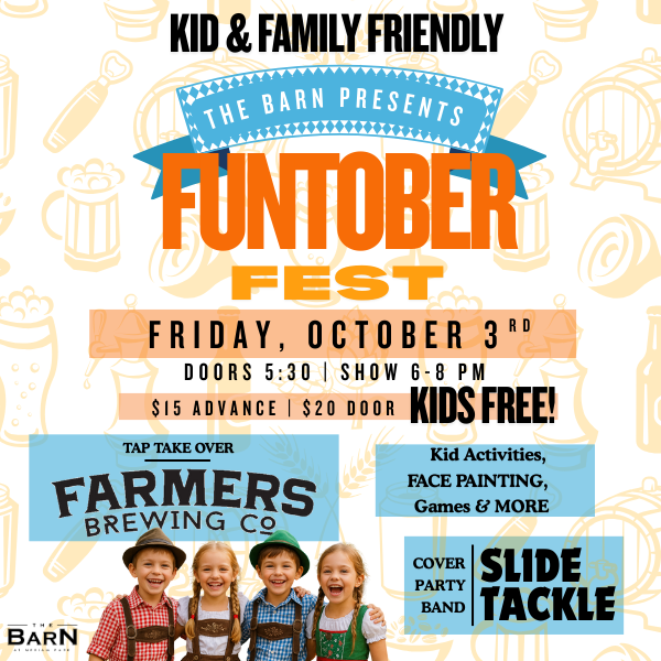 Kick off Oktoberfest weekend with us and your whole family! Farmers Brewing Co. is taking over the taps, pouring their craft favorites while Slide Tackle keeps the party going with high-energy covers that’ll have everyone on their feet.