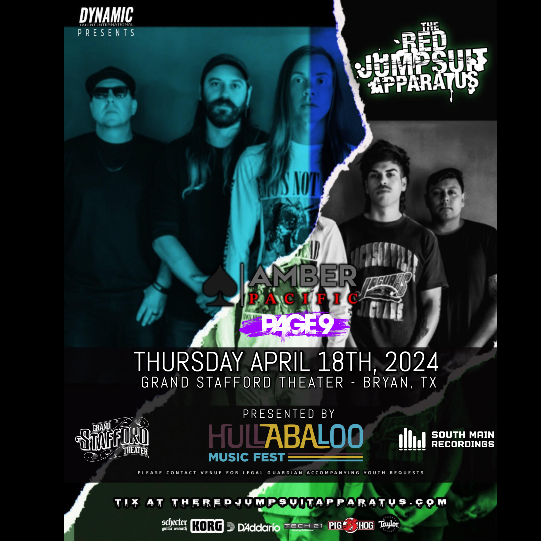 Red Jumpsuit Apparatus returns to Grand Stafford Theater with special guests Amber Pacific and Page 9.