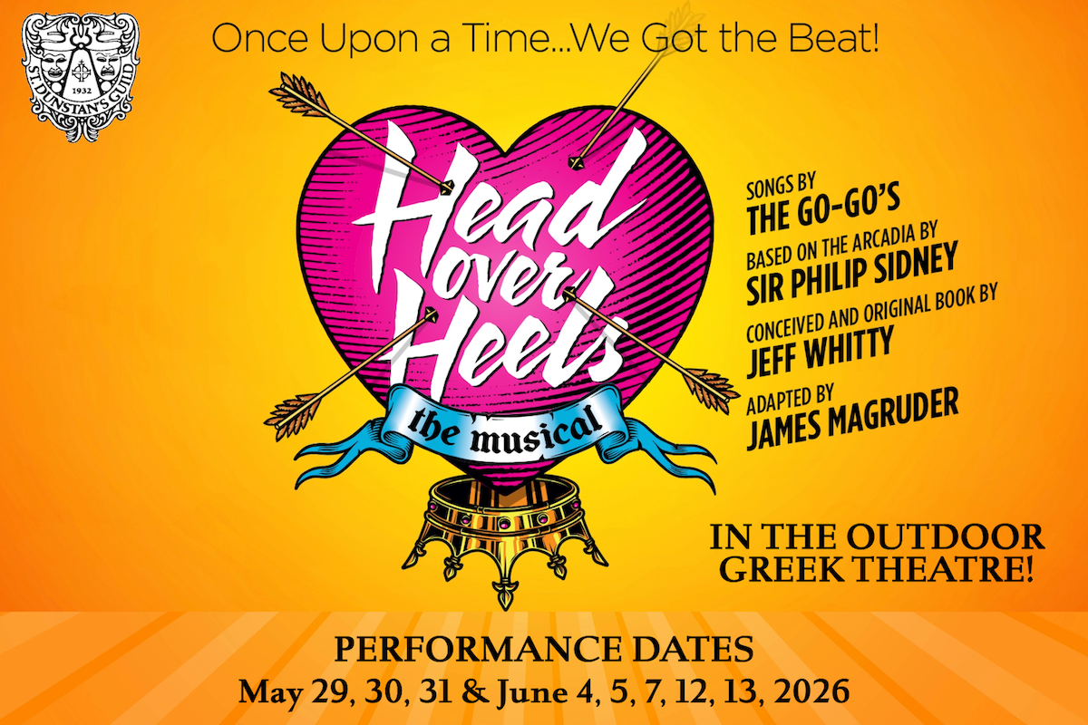 A hilarious, exuberant celebration of love, the musical Head Over Heels follows the escapades of the royal family of Arcadia. In their journey to save their beloved kingdom from extinction brought on by rigid old traditions, they discover that their new "Beat" -- the life force and vitality that will save them -- is one of love, acceptance, and inclusiveness. The musical is a marvelous mash-up of a 16th century piece of British political literature and pulsating rock music by the 1980s all-female band The Go-Go's and their hit song "We Got the Beat."