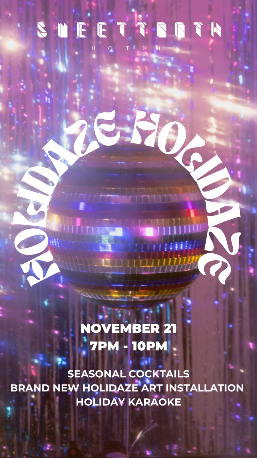 - Free RSVP: Includes access to the Holidaze Lobby photo-op and Stay Sweet Cocktail Lounge for Karaoke.