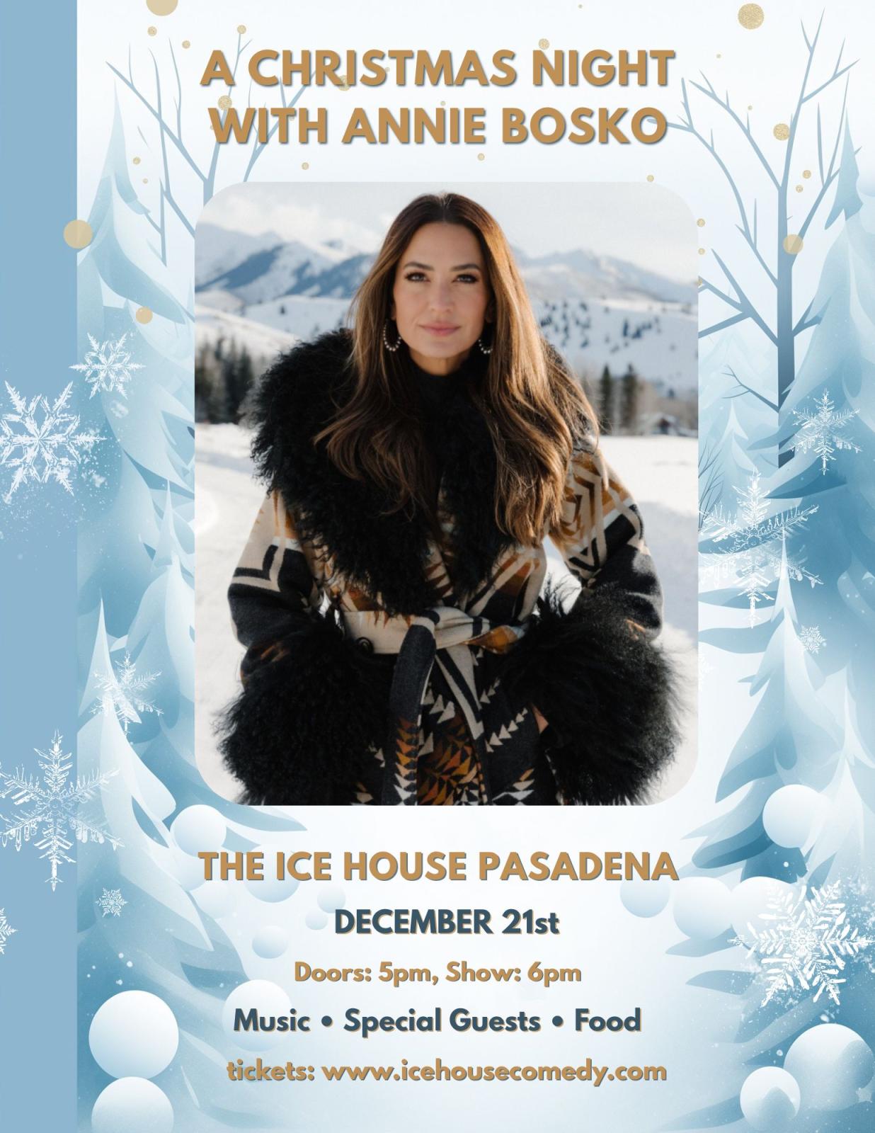 Get ready for a magical holiday evening as country sensation Annie Bosko brings her powerful vocals, heartfelt storytelling, and festive spirit to The Ice House! Enjoy holiday classics, original songs, and unforgettable moments—plus a surprise special guest.