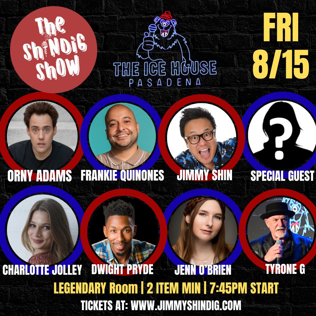 Join the Party with Jimmy Shin and the top comedians in the country! The ShinDig Show is one of the top comedy shows in Los Angeles bringing you the biggest headliners as seen on Comedy Central, Netflix, HBO, The Late Show, Def Jam, and Showtime. Don't miss this Ultimate Comedy Party...This show always has the hottest rising talent and the biggest Stars of comedy! This week we have the hilarious Orny Adams and the one and only Frankie Quinones headlining!