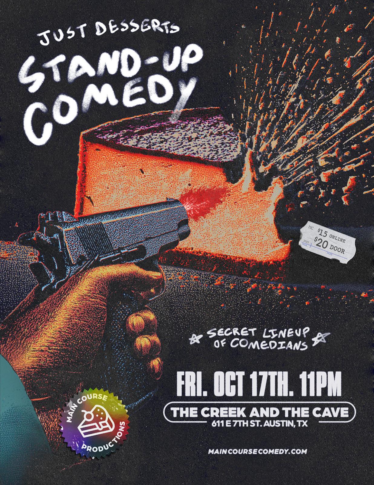 Just Desserts features a secret lineup of the best comedians in Texas at the iconic Creek and Cave. Our comics have been featured on HBO, SNL, Adult Swim, KT, JRE, and Netflix. You're gonna eat this up.