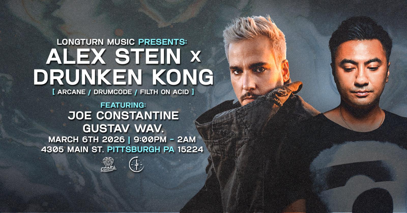 The massive final month of The Night Shift at Cobra kicks off on Friday March 6 with the first of the month's EIGHT PARTIES across Friday and Saturdays with a double headliner show, bringing two global techno forces from opposite sides of the world to the Void Sound System. From Lisbon, Alex Stein delivers a sound forged across São Paulo, Berlin, and beyond - with massive releases on Drumcode, Factory 93, Filth on Acid, and currently resides at #1 on the techno charts with his release on Terminal 1 with Victor Ruiz. With remixes for Dusty Kid and Oliver Huntemann, he's become one of techno's most commanding voices. Joining him from Tokyo, Drunken Kong returns to Cobra and brings over a decade of relentless touring, multiple albums on Tronic, chart-topping releases on Drumcode, support from Carl Cox and Adam Beyer, and a release on Eli Brown's Arcane Music label.