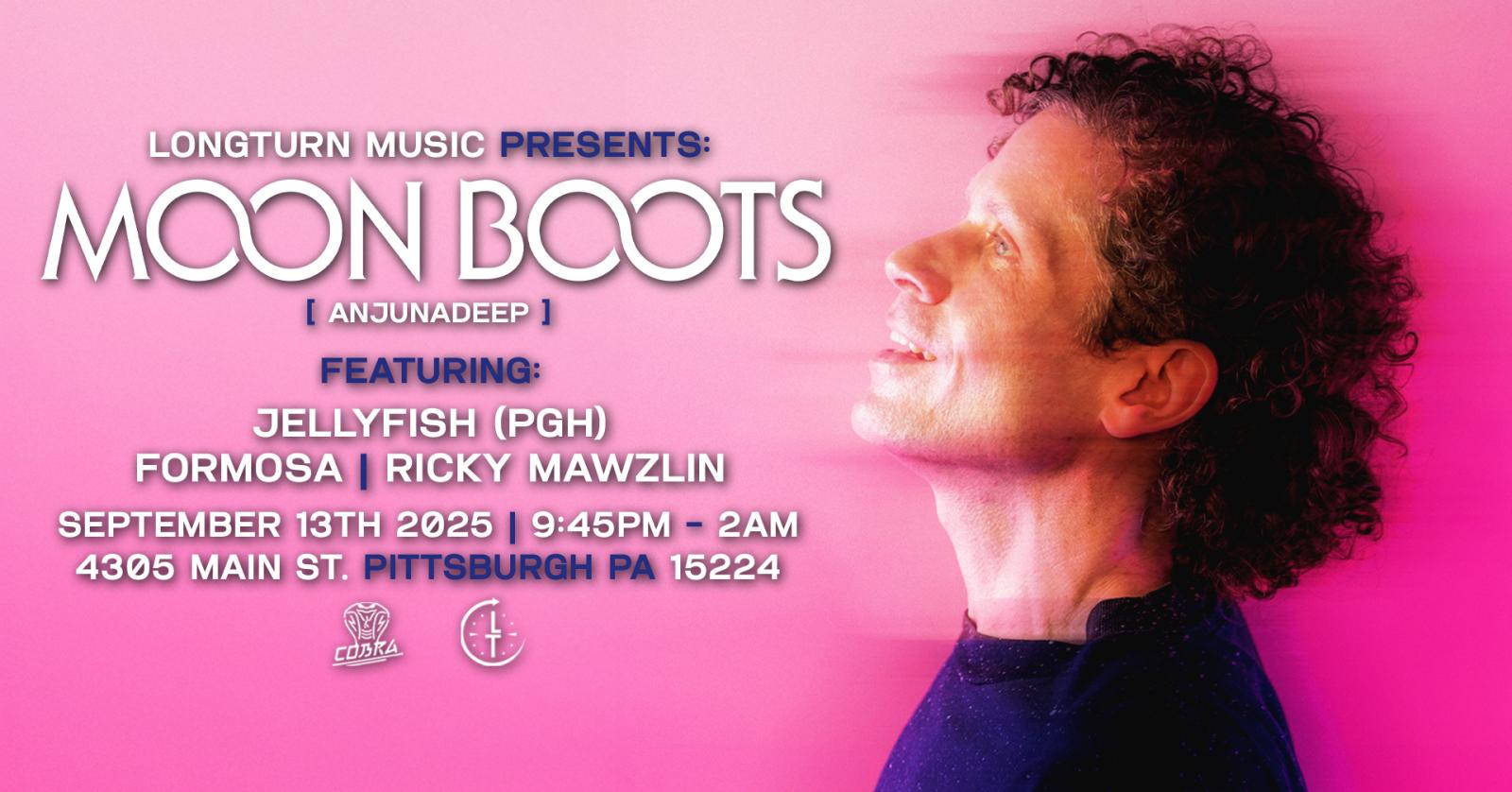 Getting the floor moving will be our friends at Jellyfish, Formosa & Ricky Mawzlin! This will be the first time we've had them both play together at one of our Cobra events for this special occasion. Expect a packed house for this magical night of disco, synthwave, and deep house from Moon Boots and some of Pittsburgh's finest.