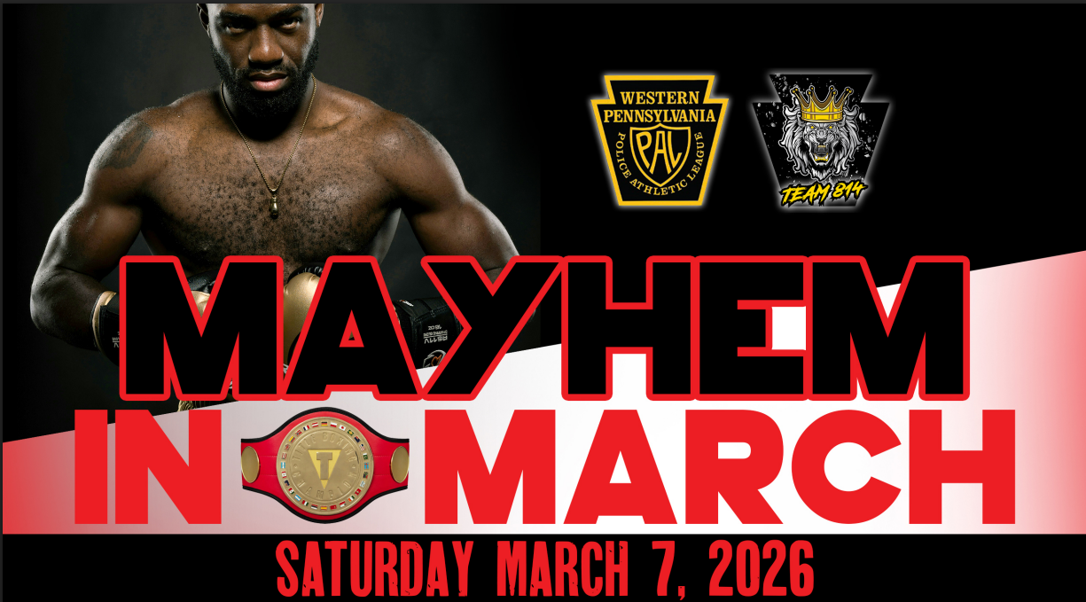 The Western Pennsylvania Police Athletic League (WPAL) and TEAM 814 are excited to announce the return of live amateur boxing to the DuBois Country Club with this year’s feature event: Mayhem in March.