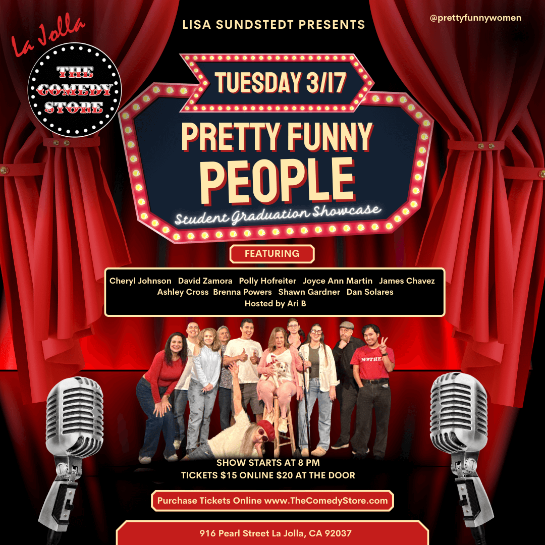 Veteran comedian, Lisa Sundstedt, presents - Pretty Funny People - her hilarious group of comedy class graduates making their stand up debut with uniquely, fresh material & nonstop laughs. Celebrate with these hilarious up & comers as they take the stage & the audience by storm!
