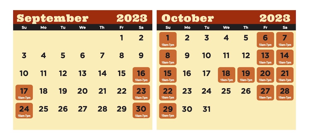 Hours of operation listed on the calendar are the open and closing times of the farm. Most families spend a minimum of 3 hours at the farm. The last tickets will be admitted in at 5pm.