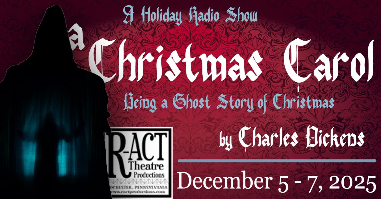 A Christmas Carol by Charles Dickens tells the story of Ebenezer Scrooge, a miserly man who is visited by the ghosts of Christmas Past, Present, and Yet to Come. Through these supernatural visits, Scrooge undergoes a transformative journey that leads him to embrace the true spirit of Christmas. Presented in the style of a live radio broadcast from the Golden Age of radio, this production brings the classic tale to life through the artful use of live practical Foley sound effects, voice acting, and narrative. All proceeds from this production will benefit the Salvation Army.