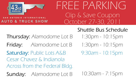 43rd Annual International Auto & Truck Show presented by the San Antonio Automobile Dealers Association, Inc. This Show is produced by SAADA and Co-sponsored by the San Antonio Express-News. The Show is for your enjoyment and to provide an opportunity for everyone to shop and compare the "2012" new cars and trucks at one location.