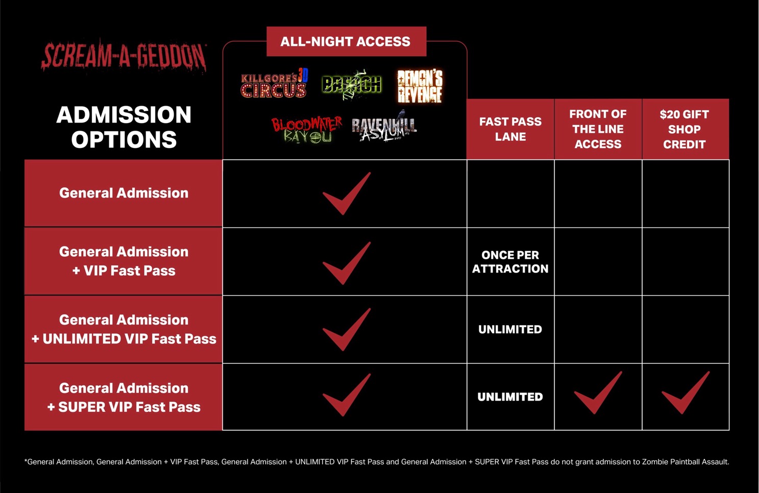Please visit the SCREAM-A-GEDDON FAQ page for answers to the most frequently asked questions.
