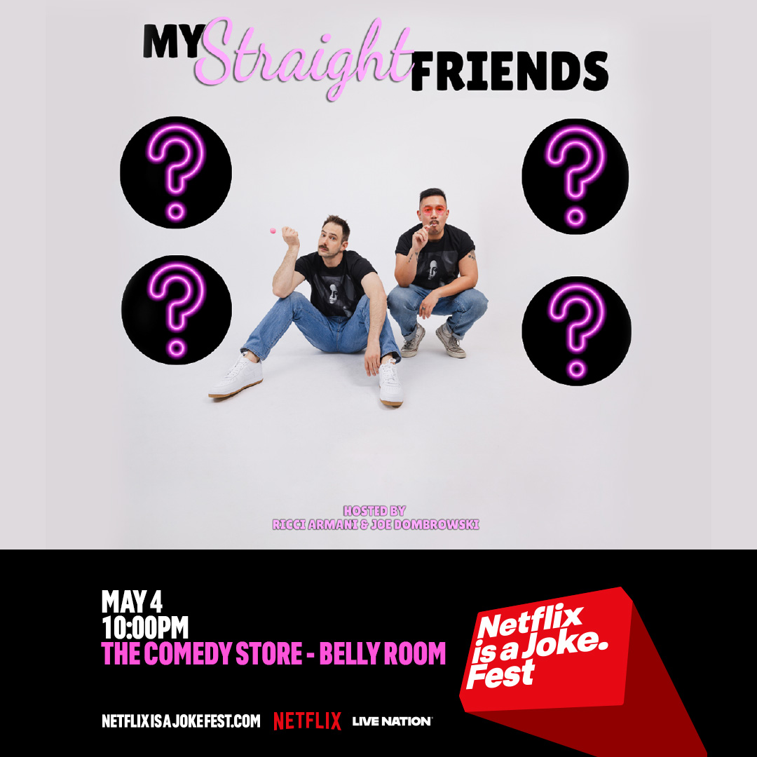 "My Straight Friends" is the uproarious LGBTQ stand up comedy/talk show hybrid where comedians Ricci Armani and Joe Dombrowksi take a deep dive into gay culture with their straight friends!