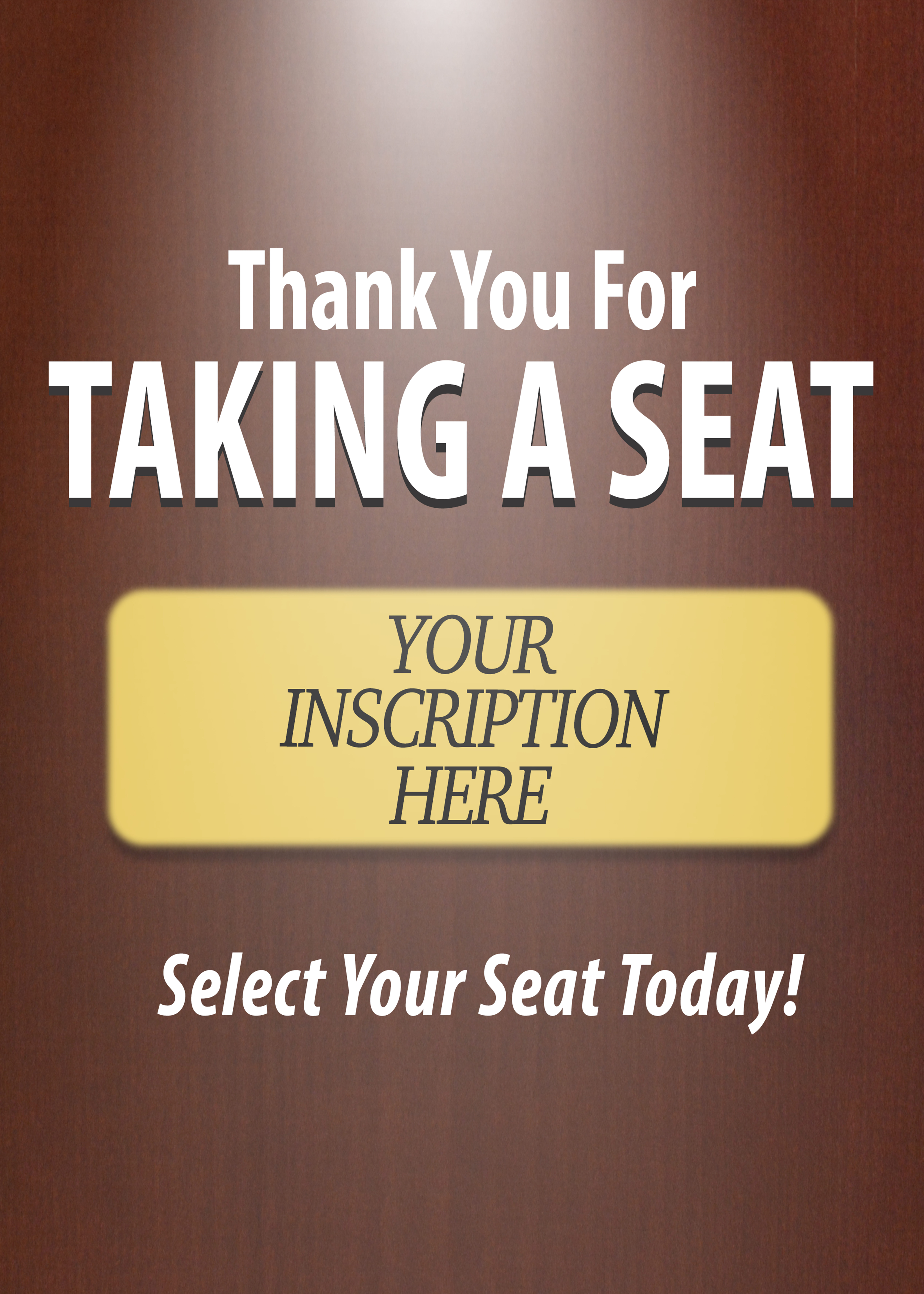 As you know, your generous gift allows you the opportunity to inscribe your seat or seats with a permanent, custom message of your choosing.
