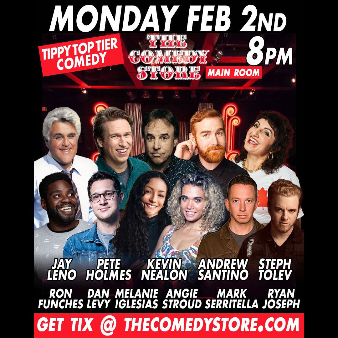 Tippy Top Tier Comedy - Jay Leno, Pete Holmes, Kevin Nealon, Andrew Santino, Steph Tolev, Ron Funches, Dan Levy, Angie Stroud, Melanie Iglesias, Mark Serritella, Ryan Joseph +more!
