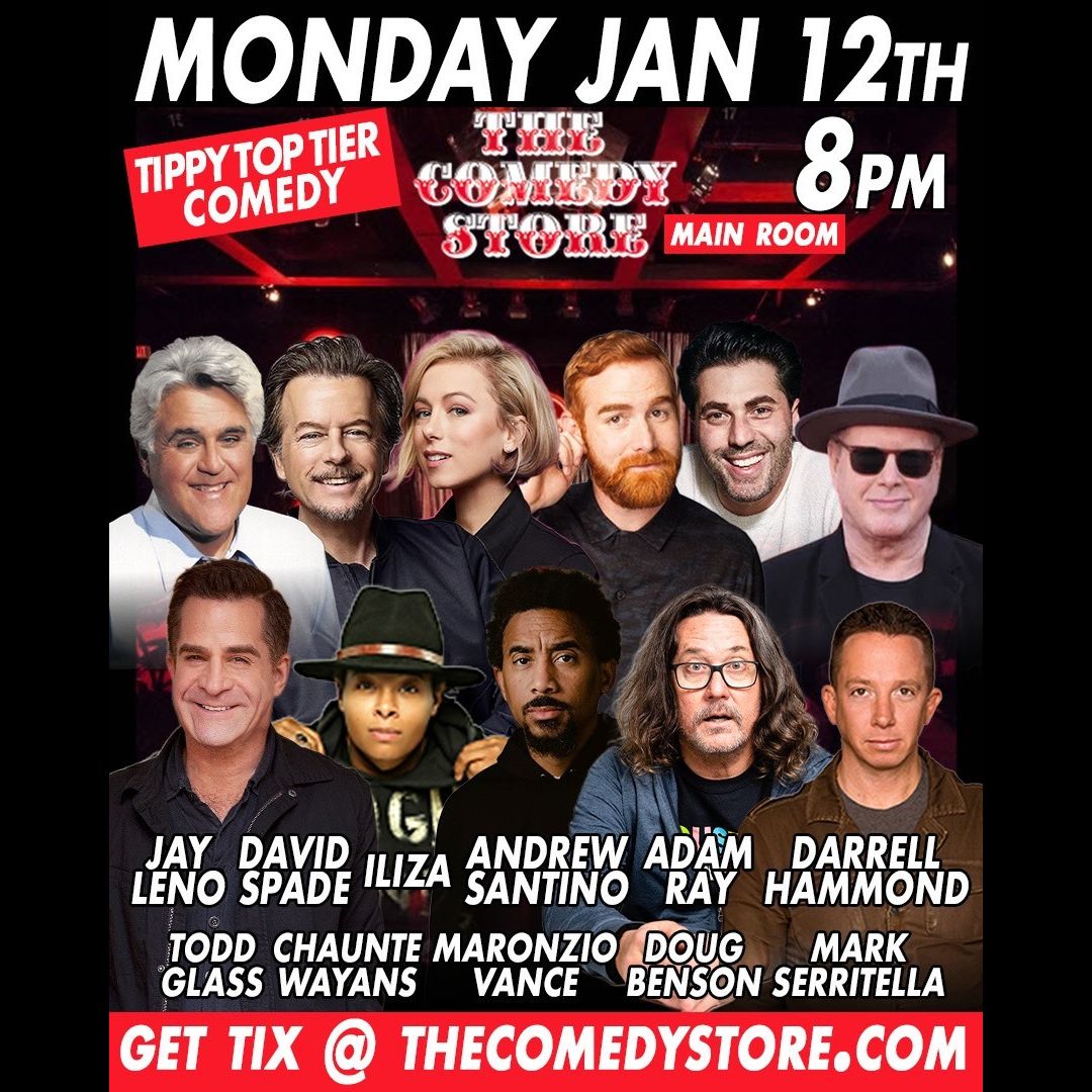 *SOLD OUT* Tippy Top Tier - Jay Leno, David Spade, Iliza Shlesinger, Andrew Santino, Adam Ray, Darrell Hammond, Doug Benson, Todd Glass, Chaunte Wayans, Nicky Paris, Maronzio Vance, Mark Serritella +more!