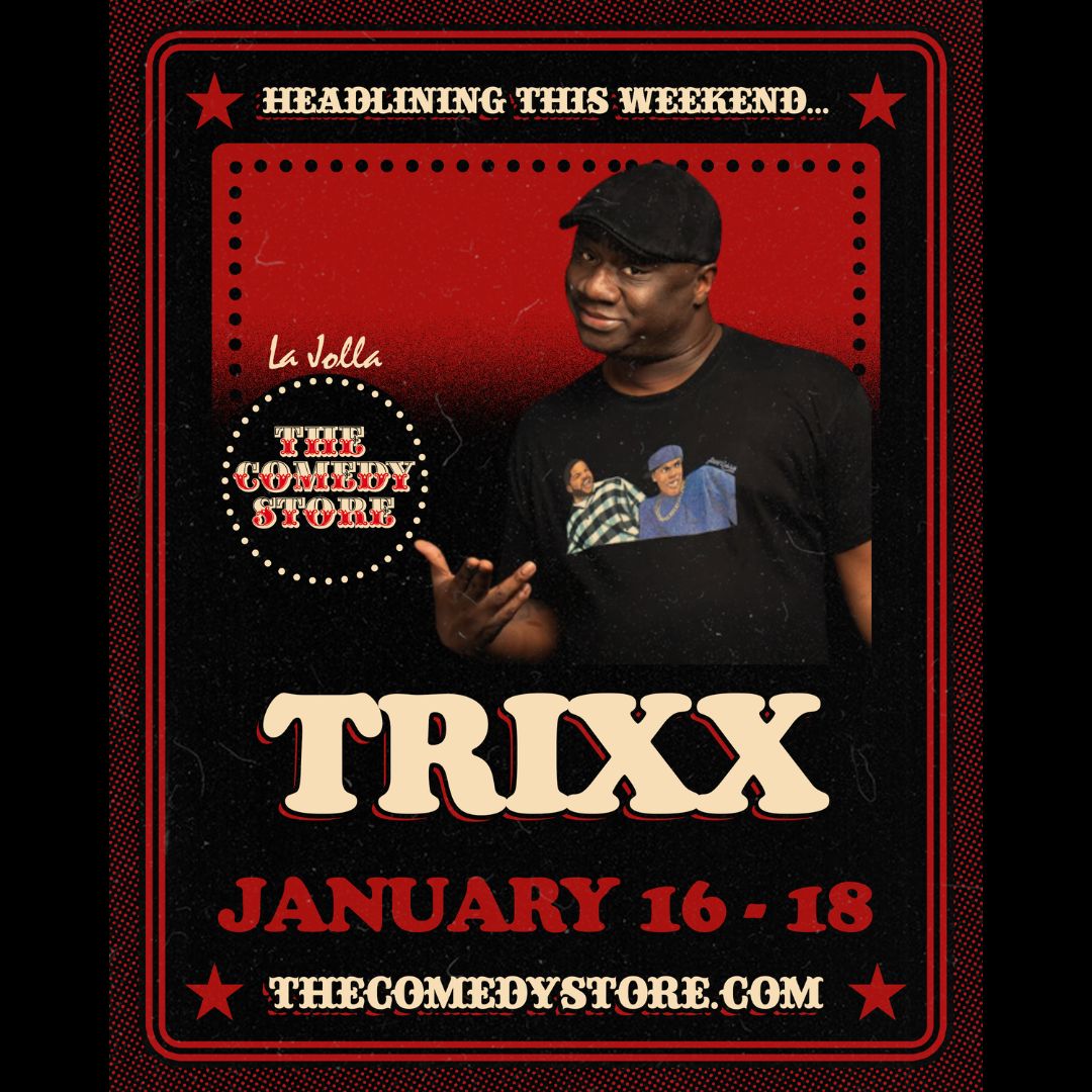 Trixx has developed a cult following with his no-holds-barred, take-no-prisoners brand of comedy. Mixing boisterous commentary on topics like pop culture, relationships, music, clubbing, and sex, with acute insights on being black in North America, Trixx’s streetwise, boundary-pushing humour is unafraid of taking on everyone and everything in his sights.