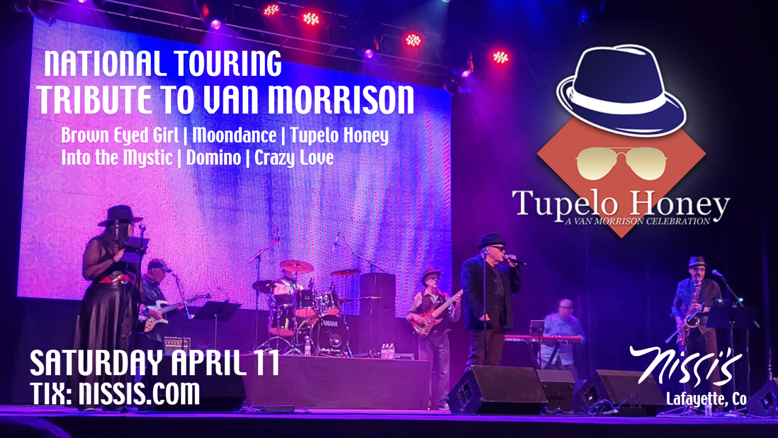 “Moondance”, “Into The Mystic”, “Brown Eyed Girl”, “Have I Told You Lately”, “Crazy Love”, “Someone Like You”, “Crazy Love” …the list goes on and on and on and Tupelo Honey celebrates this impressive catalog of songs with some of the finest musicians.
